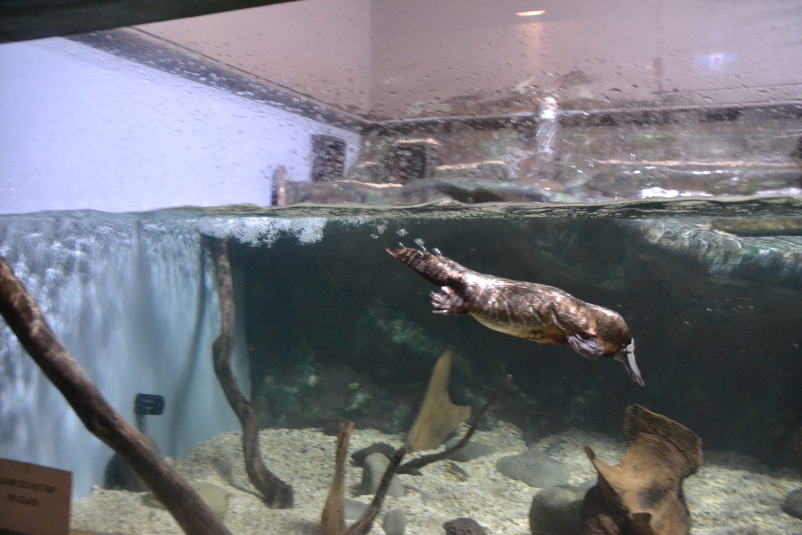 Wir haben eine Tour für 1200 gebucht und sind schon um 1130 dort. Wir sind uns direkt schon selbst unheimlich. Ella führt uns durch die Räume. Zuerst kommen wir zu Jupiter. Das ist ein Schnabeltier. Man kann ihn in einem Aquarium sehen, während er mit Würmern und ähnlichen Leckereien gefüttert wird. Streicheln darf man ihn nicht, weil er giftig ist.