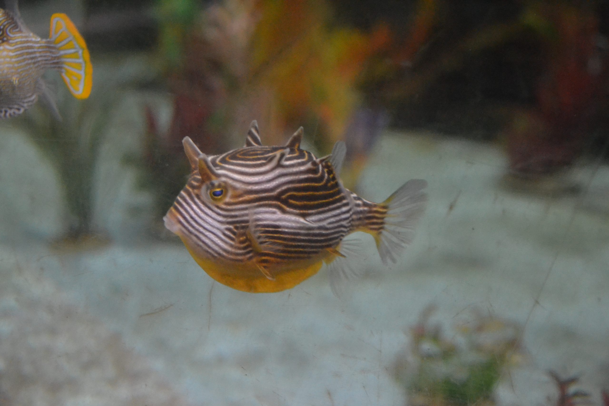 Als nächstes kommt der Raum, wo die Babys aufgezogen werden. Die neugeborenen werden aus den Aquarien gefischt und in eigene Behälter gegeben, wo sie gefüttert werden, bis sie in die Grundschule kommen. Das ist ein großer Behälter mit jungen Tieren. Danach gibt es noch einen Raum mit Aquarien verschiedener Fische und Krabben.