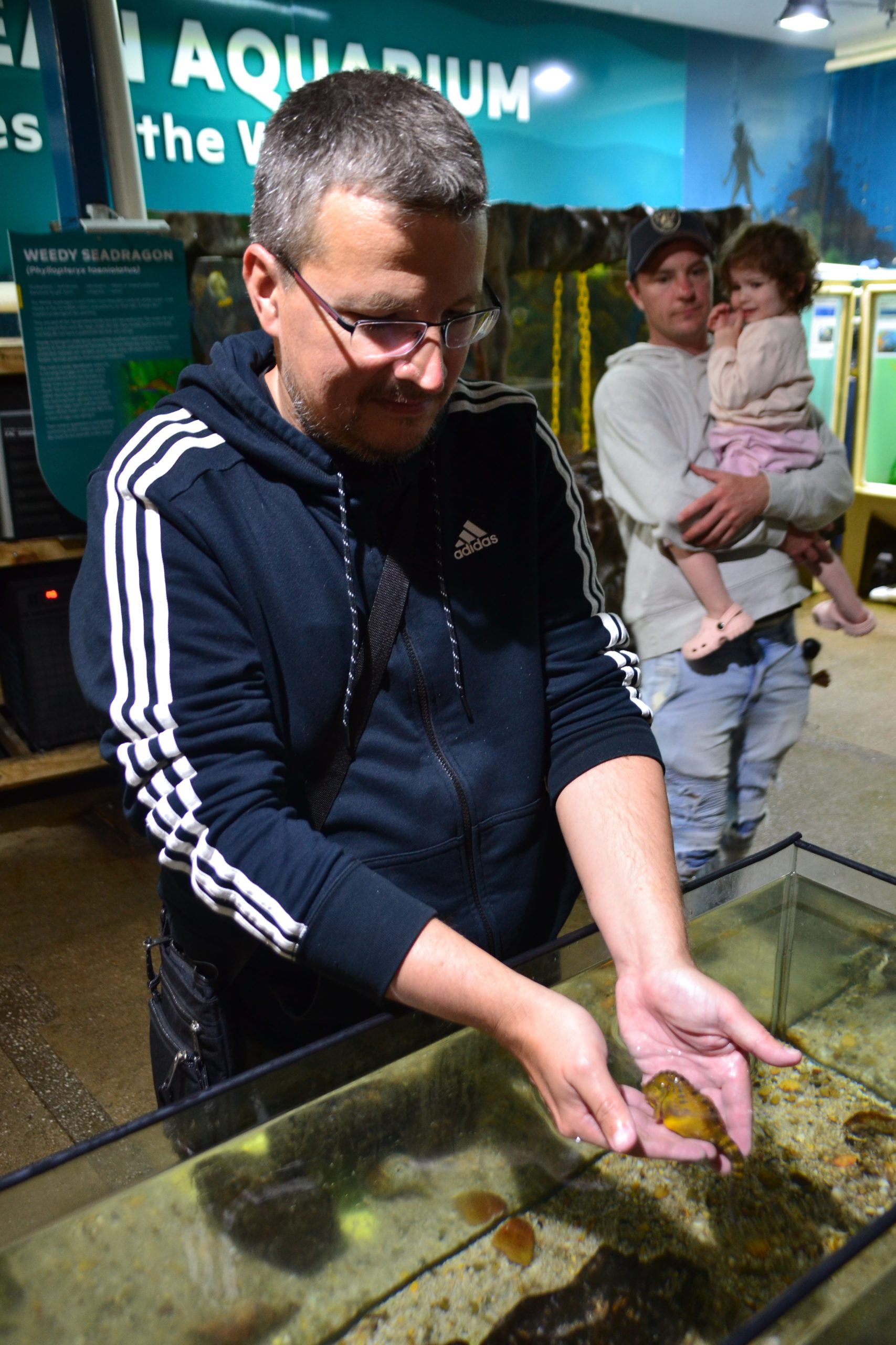 Die Tour endet im Souvenirshop. Das kennen wir von irgendwo. Weil diese Shops dazu da sind, dumme Touristen abzuzocken, kaufen wir einen Haufen Zeug ein. Gleich in der Nähe ist die Seahorse World. Das ist eine Seepferdchen-Zucht, die besichtigt werden kann. Mura bleibt diesmal im Wohnmobil. Es gibt ein paar Aquarien mit verschiedenen Arten von Seepferdchen.
