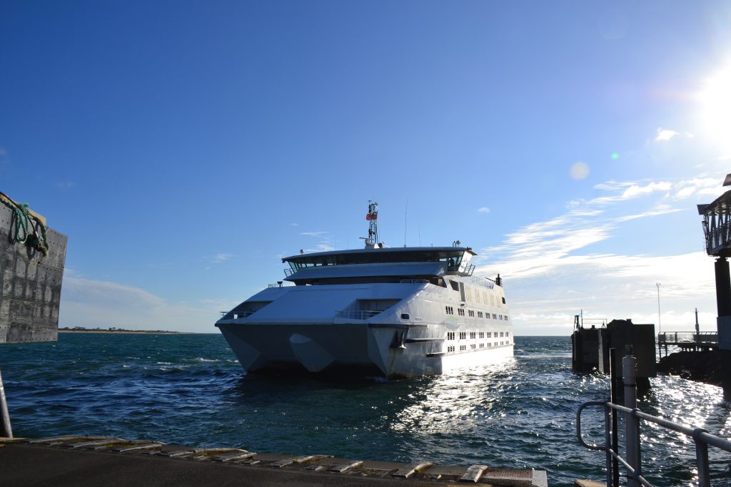 Deswegen müssen auch die letzten beiden Eise aufgegessen werden. Schnell noch am Bankomaten vorbei und ab geht’s zur Fähre. Das kennen wir jetzt schon. Wir zeigen unsere Reservierung, bekommen die Boardingpässe und werden kontrolliert, ob wir nichts schlimmes an Bord haben. Könnte ja sein, dass wir einen Tasmanischen Teufel raus schmuggeln wollen oder sowas.