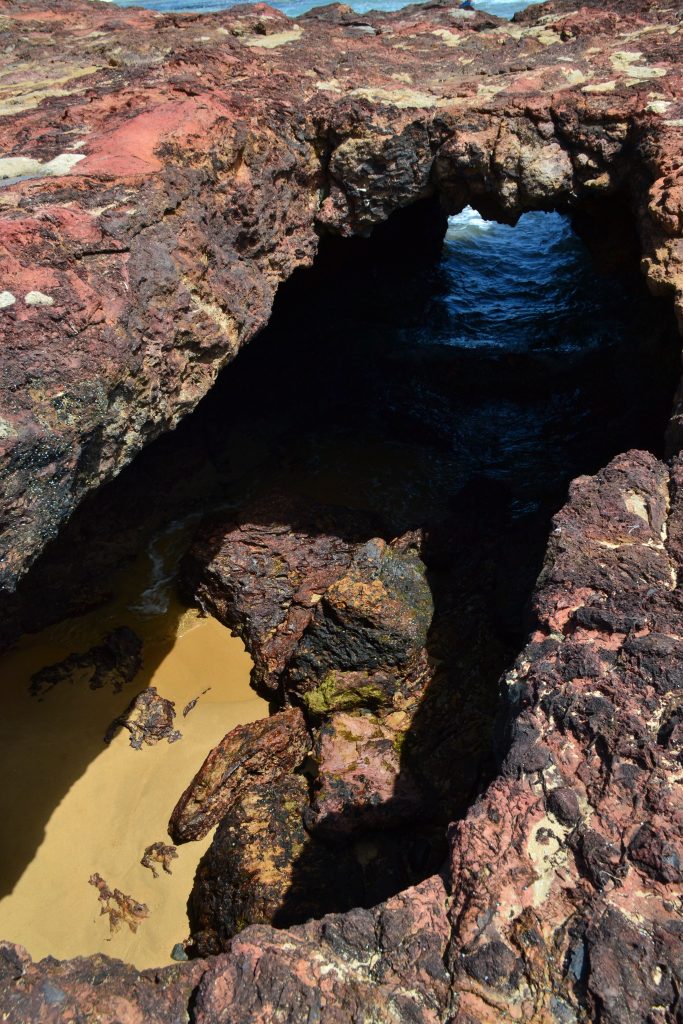 Sondern am Strand entlang bis zu einer Höhle in einer Gesteinsformation. Mittels Stiegen muss aber zuerst eine große Sanddüne überwunden werden. Diesmal machen ICBeter und Tami die Wanderung. Da beide nicht in die Höhle hineinfallen, wird der Rückweg angetreten. Da es schon nach 12 ist, wird der Campingplatz angesteuert.
