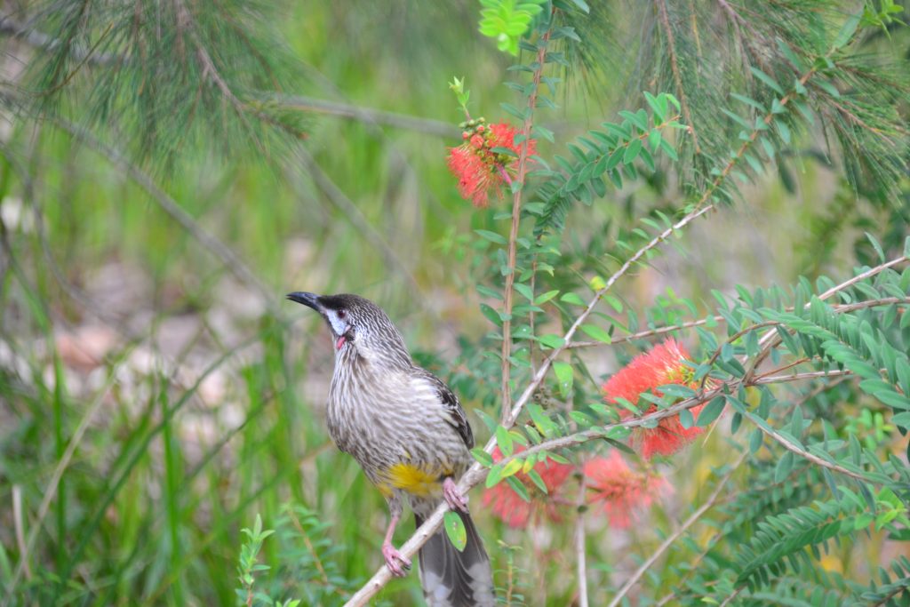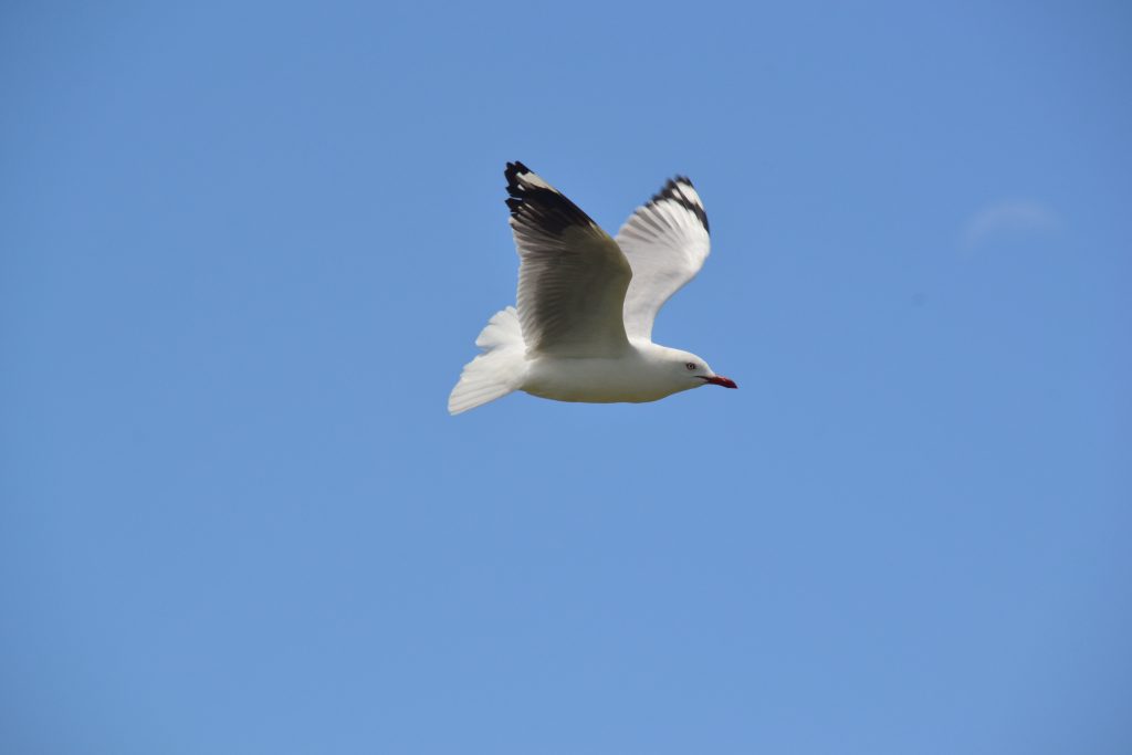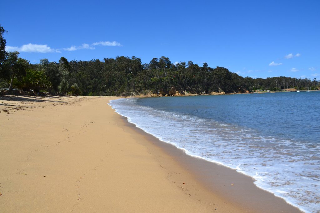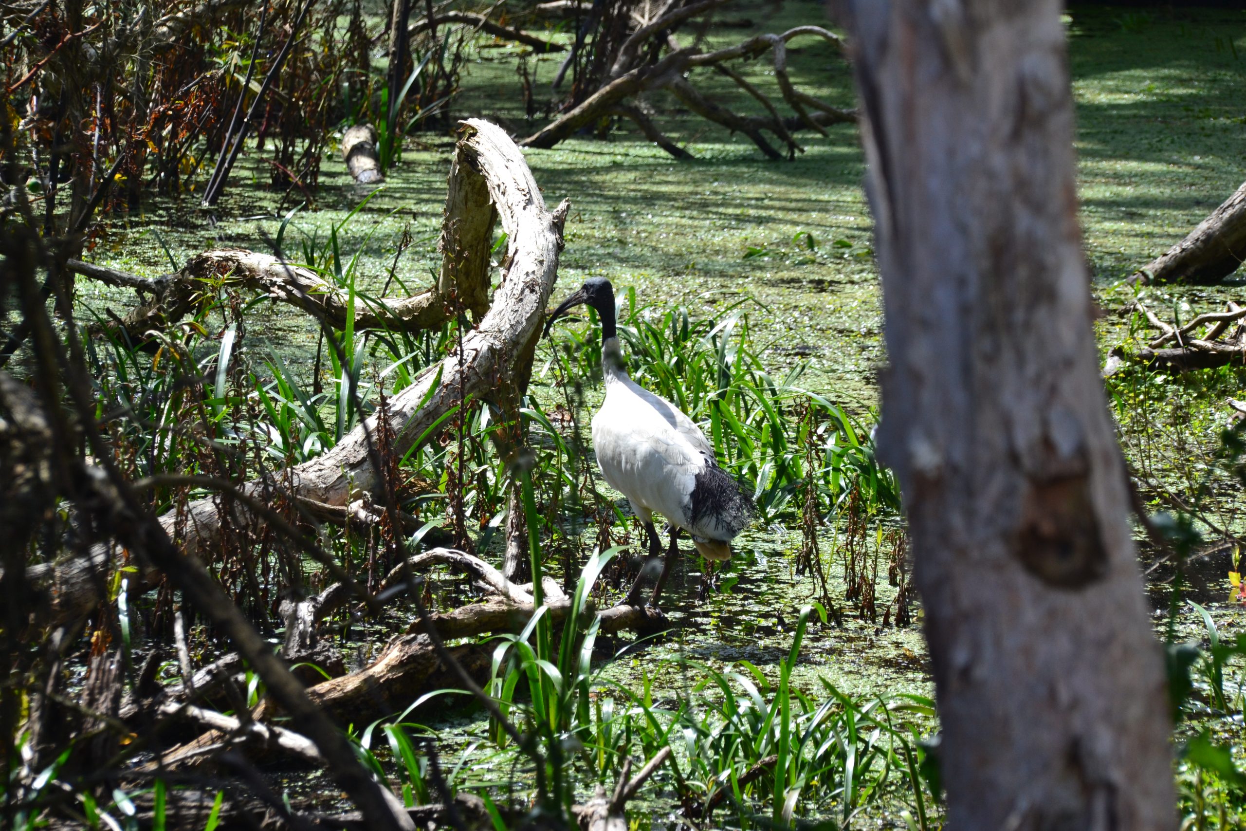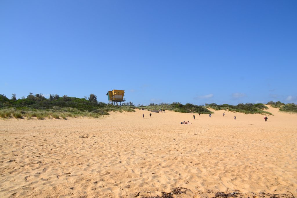 Sie geht zuerst durch einen kleinen Wald. Am Anfang steht ein Schild, dass man Sichtungen von Koalas melden soll. Das machen wir natürlich. Oder würden es machen, wenn sich die Koalas nicht verstecken würden. Dann geht es entlang des Sees dem Sandstrand entlang. Dort zeigt sich auch allerhand Geflügel. Der Wind geht wieder mal ordentlich.