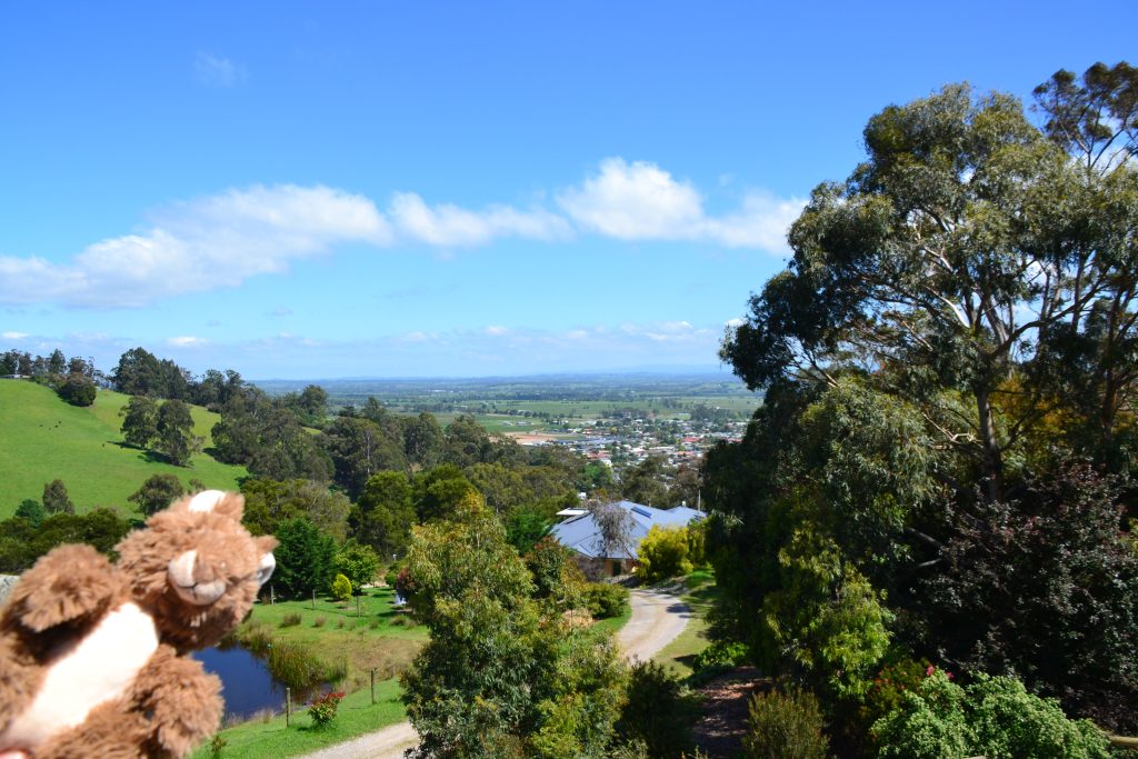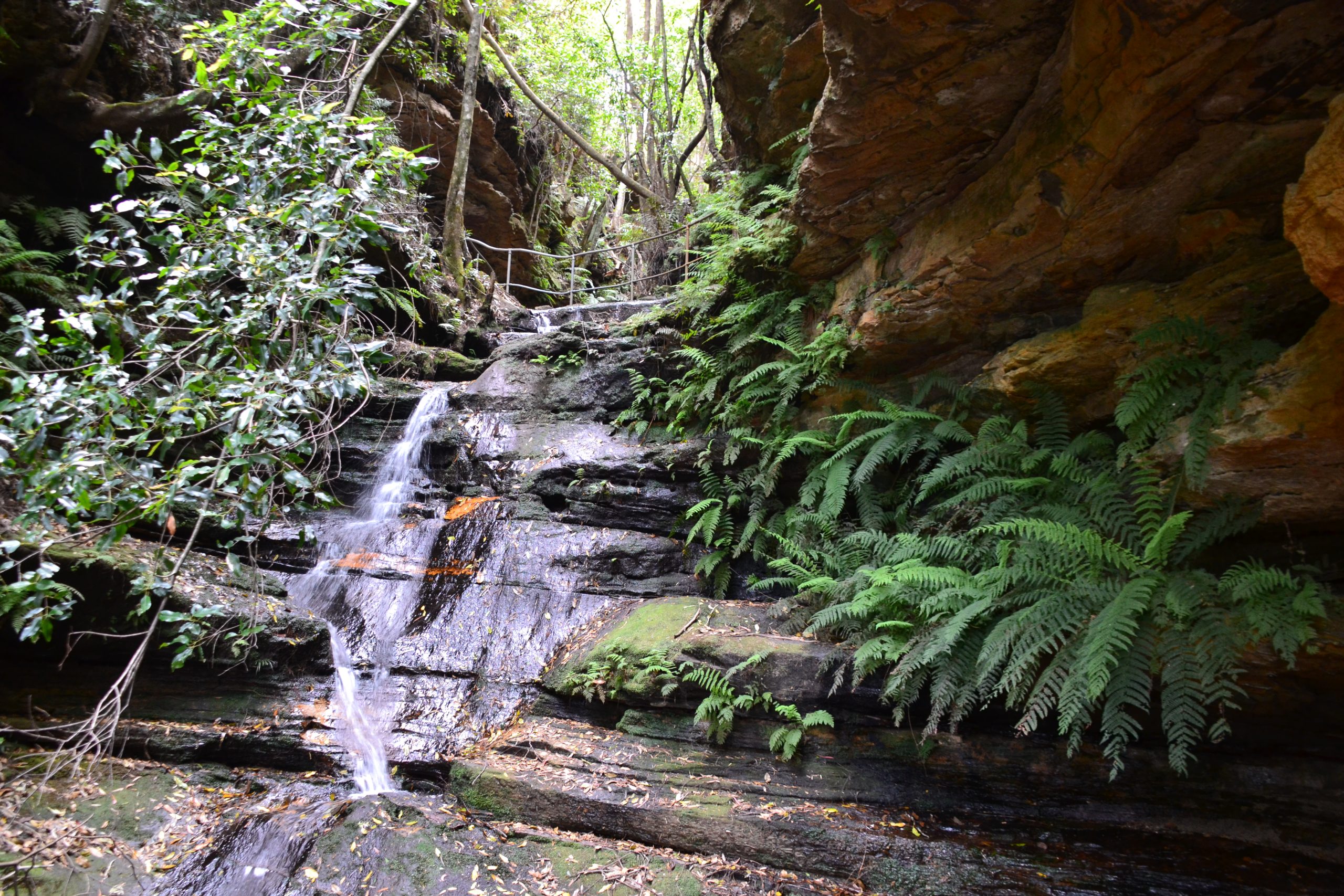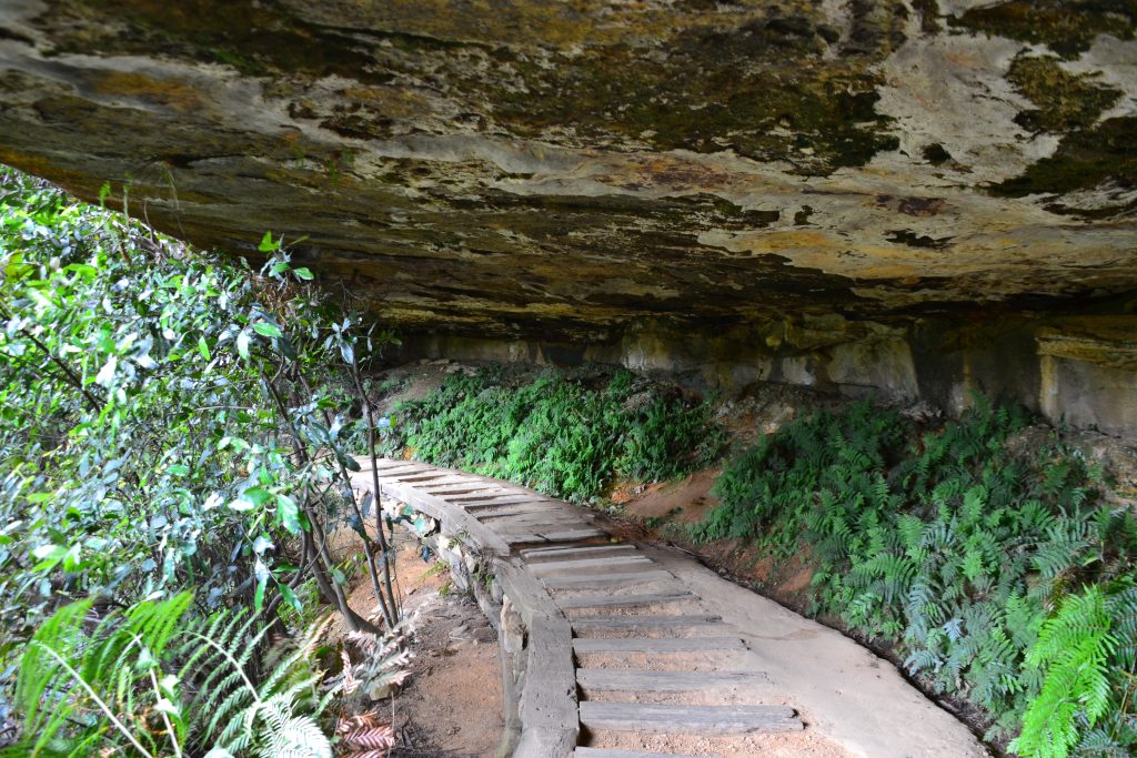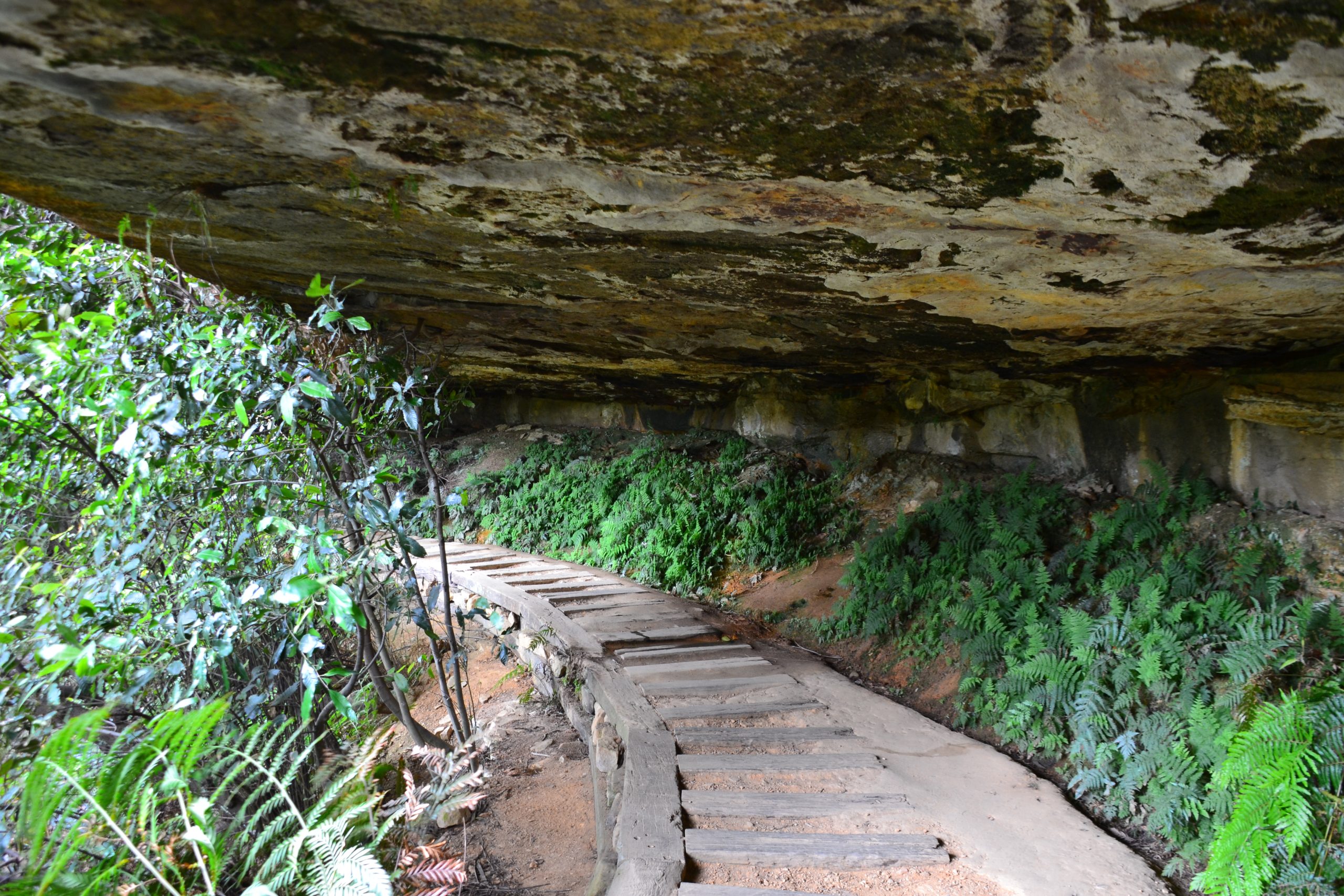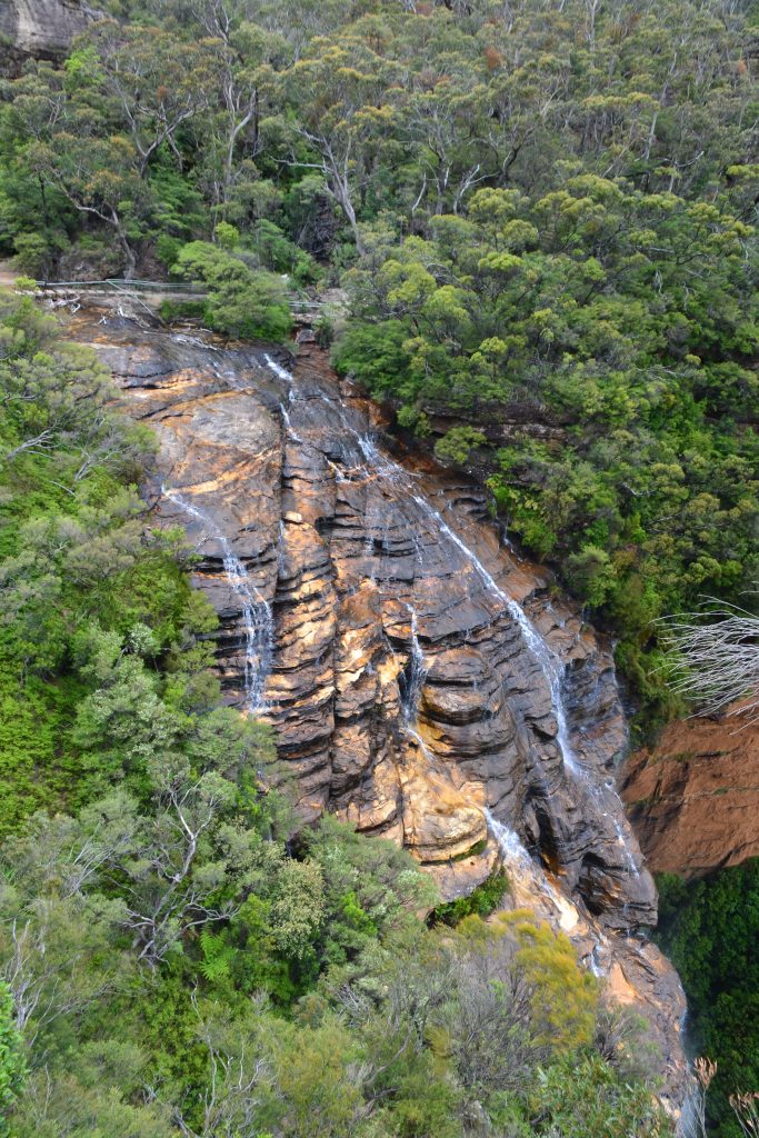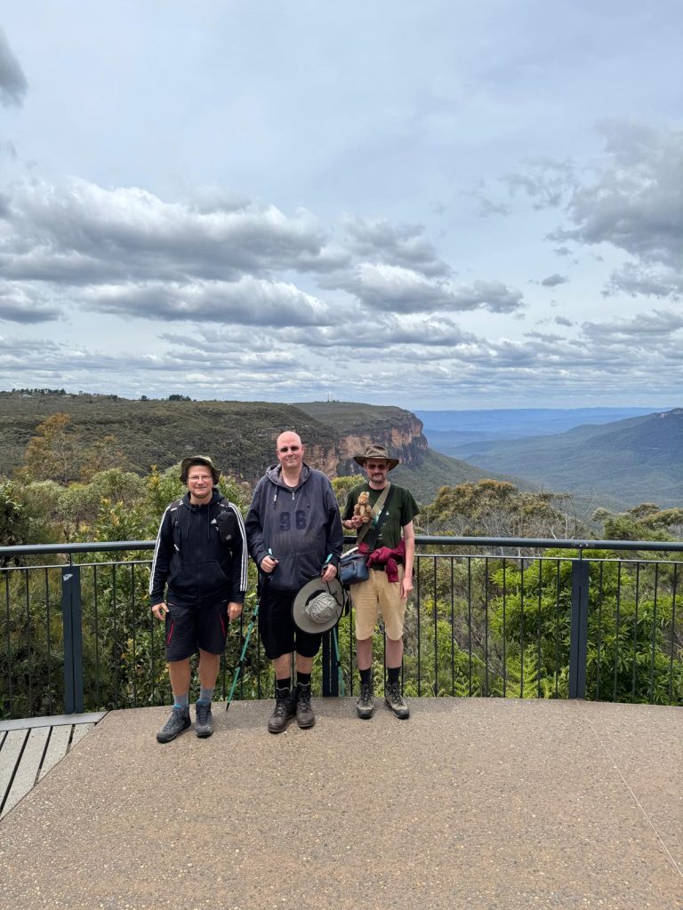 Natürlich ist eine Wanderung geplant. Der Overcliff-Undercliff Trail. Bis zum dritten Lookout gehen sogar alle mit. Es wird aber nicht verraten, wer beim dritten umdreht. Der Weg heißt so, weil es ein Rundweg ist, der in eine Richtung oberhalb und in die andere Richtung unterhalb der Felsen geht. Meist ist man im Wald, immer wieder gibt es aber Lookouts, wo man einen weiten Überblick über die Blue Mountains hat.