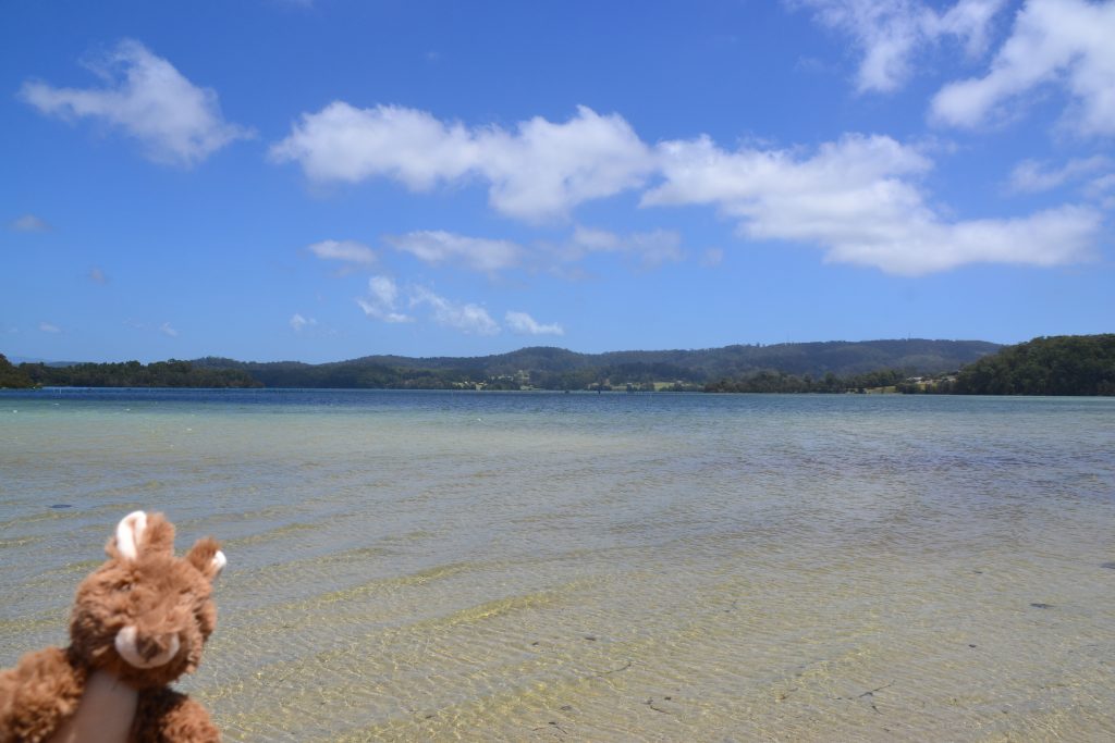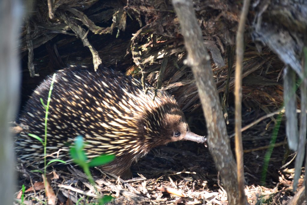 Der Weg geht großteils durch den Wald. Das hat den zusätzlichen Vorteil, dass es Schatten gibt. Um 1600 brennt hier nämlich noch ordentlich die Sonne runter. Hin und wieder kommt ein Aussichtspunkt auf die Seite des Sees. Auch ein Ameisenigel wird entdeckt. Der haut aber nach kurzem ins Unterholz ab. Zum Schluss gibt es einen Lookout, von dem man zum Entrance sieht.