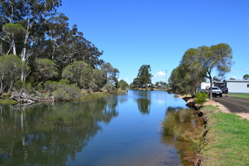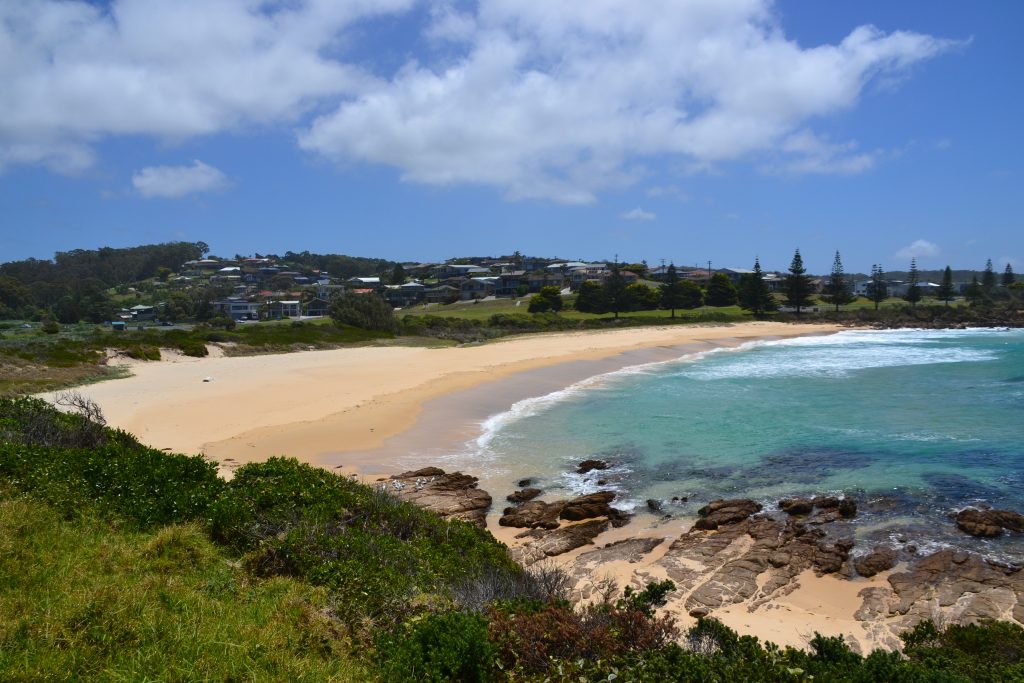 Einige Kilometer vor dem Campingplatz überfahren wir dann die Grenze von Victoria nach New South Wales (NSW). Weil es nicht gelingt, die „Welcome to NSW“-Tafel zu fotografieren, wird umgedreht. Alle guten Umdrehdinge sind bekanntlich drei. Der Campingplatz ist der Ingenia Eden Beachfront. Wie der Name vermuten lässt, liegt der am Strand.