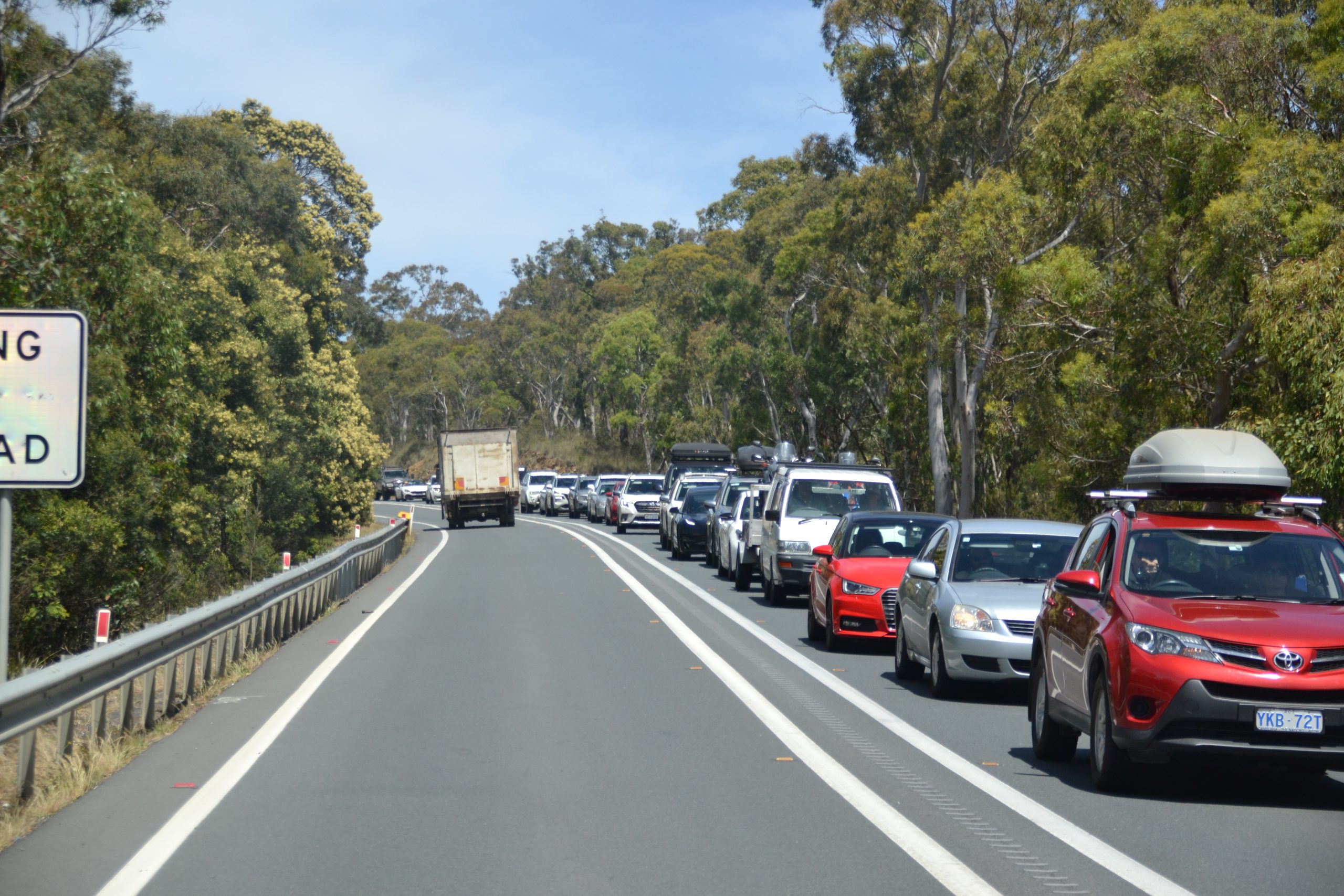 Es wird rechtzeitig ausgecheckt. Die Fahrt geht über den Kings Highway. Gestern sind wir den ganzen Tag über den Princes Highway gefahren. Das ist also ein Aufstieg! Der Highway ist gut ausgebaut, aber ziemlich kurvig. Damit die Autofahrer Ruhepausen einlegen, sind über die Straße zwei Baustellen mit Ampelregelung verteilt. Das ist sehr schlau.