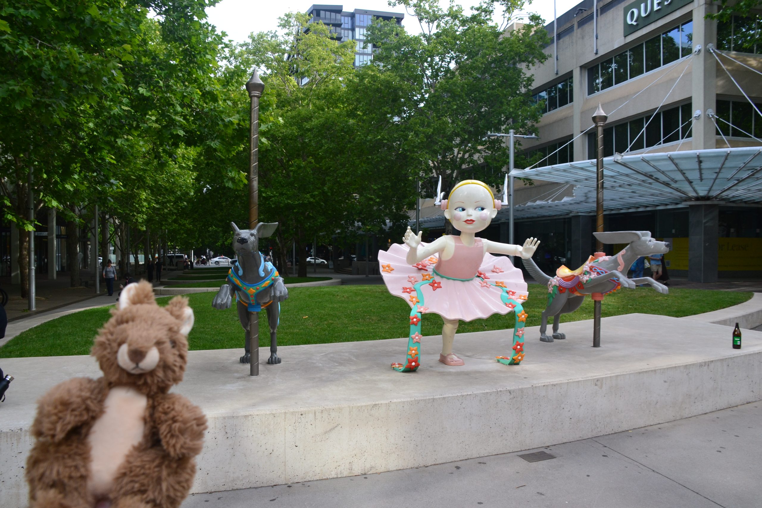 ICBeter und Tami fahren zum Hopon-Hopoff-Bus ins Stadtzentrum. Die Straßenbahn-Station ist gleich neben dem Exhibitionpark. Der ist aber so groß, dass man trotzdem 5 Minuten hingehen muss. In der Station muss die schwierige Frage beantwortet werden, ob wir jetzt Richtung Alinga Street oder Gungahlin Place fahren sollen. Freundliche Passanten verraten es uns.