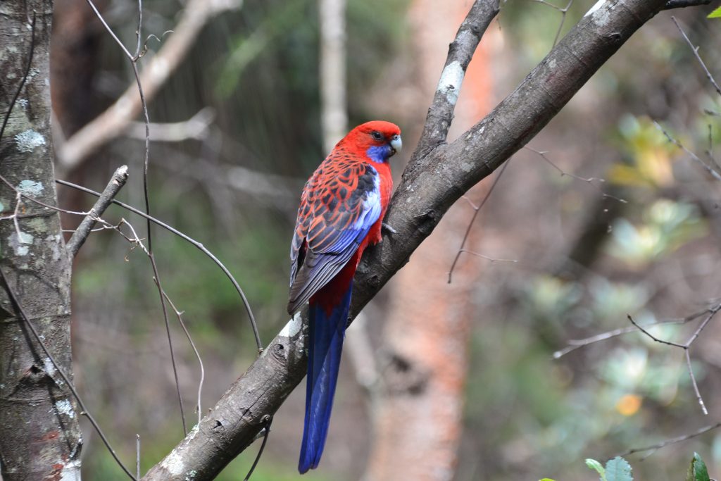 Stiegen gibt es auch genug. Vor allem, wenn man zu allen Lookouts hingeht. Das Wetter ist mit Bewölkung ideal zum Wandern. Nur der Wind geht etwas zu stark. Das hätte man schon besser machen können, wenn wir hier her kommen… Aber immerhin regnet es nicht und es kommt sogar zeitweise die Sonne raus. Hier gibt es auch rote Papageien zu sehen, die auf den Ästen sitzen, um sich bewundern zu lassen.