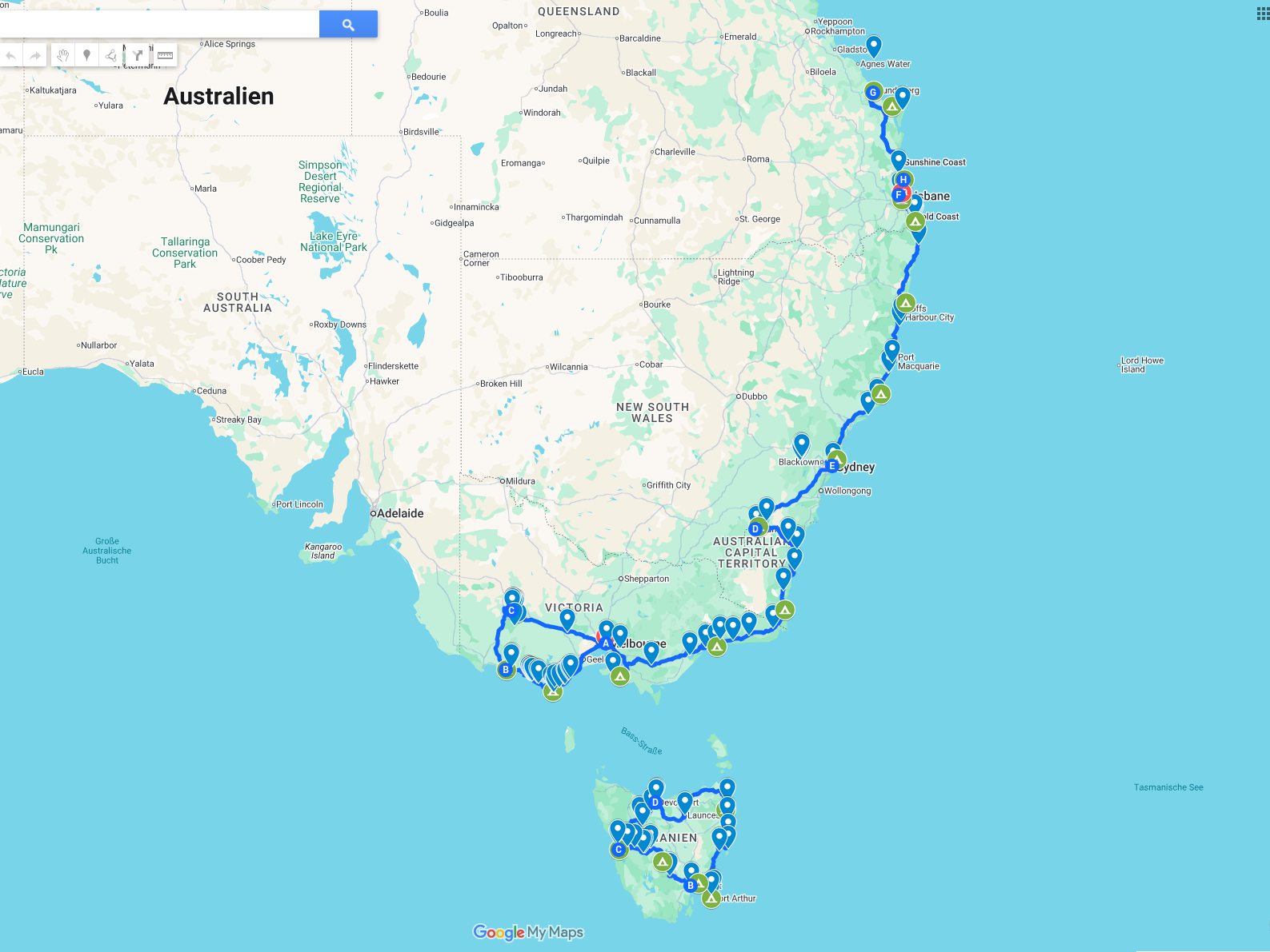 Die Route lautet Wien – Peking – Melbourne bzw. Melbourne – Peking – Budapest. Ohne Budapest wäre es viel teurer gewesen. Klar… Budapest liegt ja viel näher an Peking als Wien! In bewährter Manier werden mit einem Wohnmobil östliche Südküste, Tasmanien und die südliche Ostküste abgefahren. Mit Fährenfahrt und Inlandsflug.