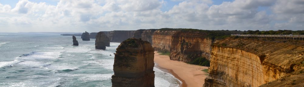 Von dort kann man zu einer riesigen Aussichtsplattform marschieren. Und sich einen Platz am Geländer mit freier Sicht auf die Apostel erkämpfen. Wer im Nahkampf obsiegt hat, kann ein Foto machen. Und sich dann schnell zurück ziehen, bevor eine Kohorte Asiaten angreifen kann, die ein Selfie machen wollen. Mit so einer Einheit ist nicht zu spaßen. Asiatische Touristengruppen sind der Endgegner bei jeder Attraktion.